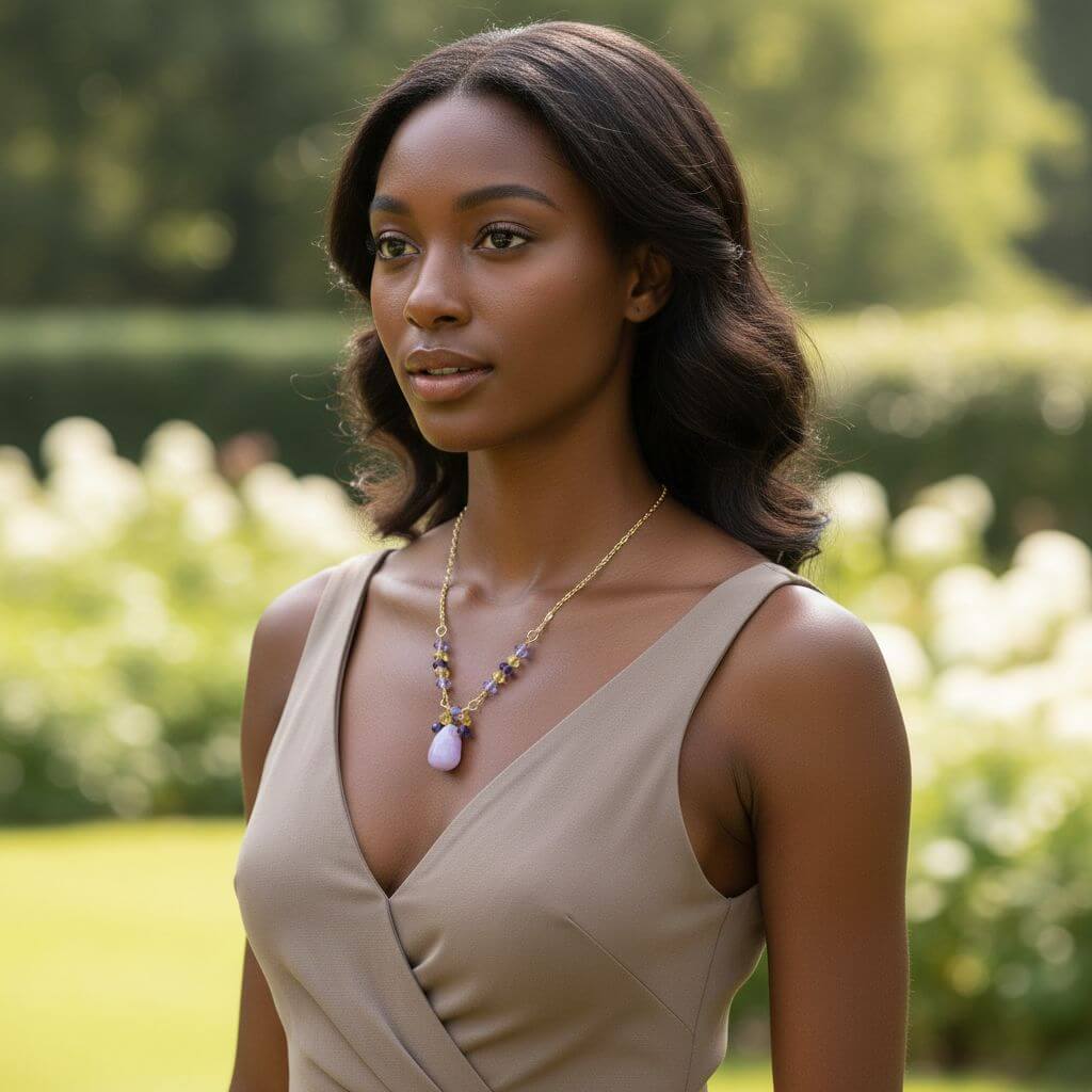 As a Montana-based artisan jewelry studio, we create each piece of Handmade Hammered Metal Jewelry with meticulous attention to detail and genuine passion for the craft. This Lavender Candy Jade Drop Gold Wire Wrapped Necklace is individually hand-assembled with genuine gemstones and authentic Swarovski crystals—never mass-produced. You're receiving authentic artisan jewelry with character, soul, and the unique variations that make handmade pieces truly special.
