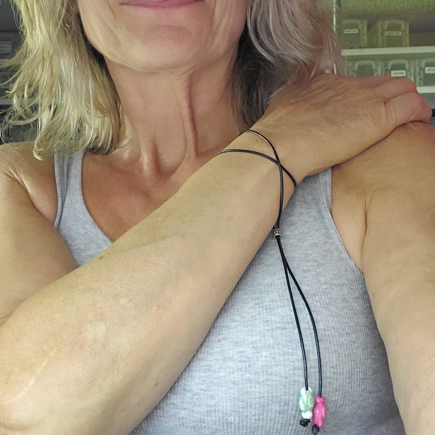 AMD1318-5Handmade Black Leather Colored Ceramic Talking NecklaceJewelryNecklace$ 29.00Alexa Martha Designs