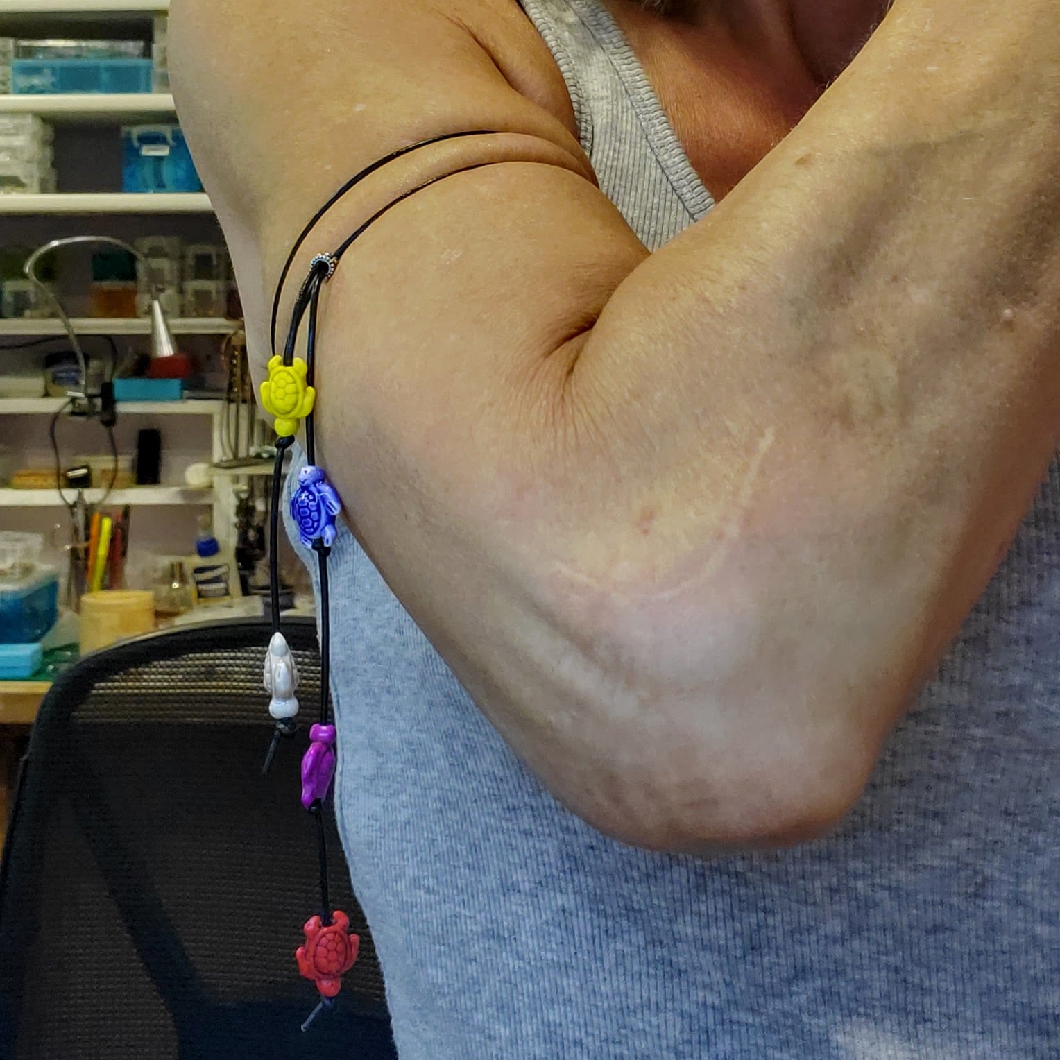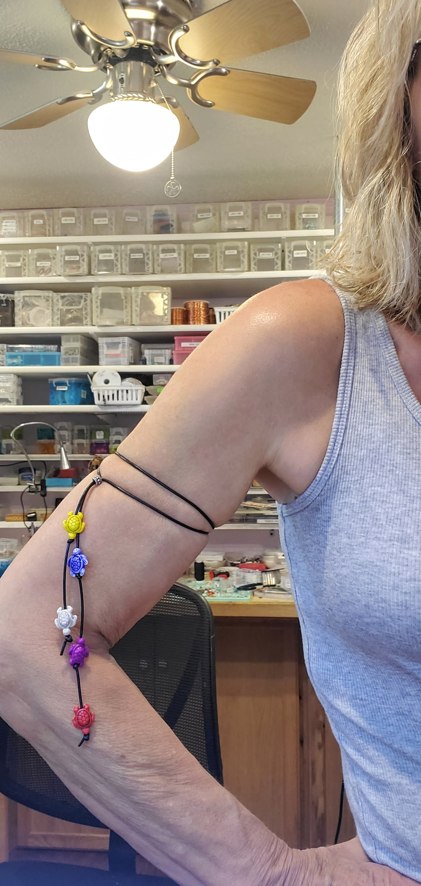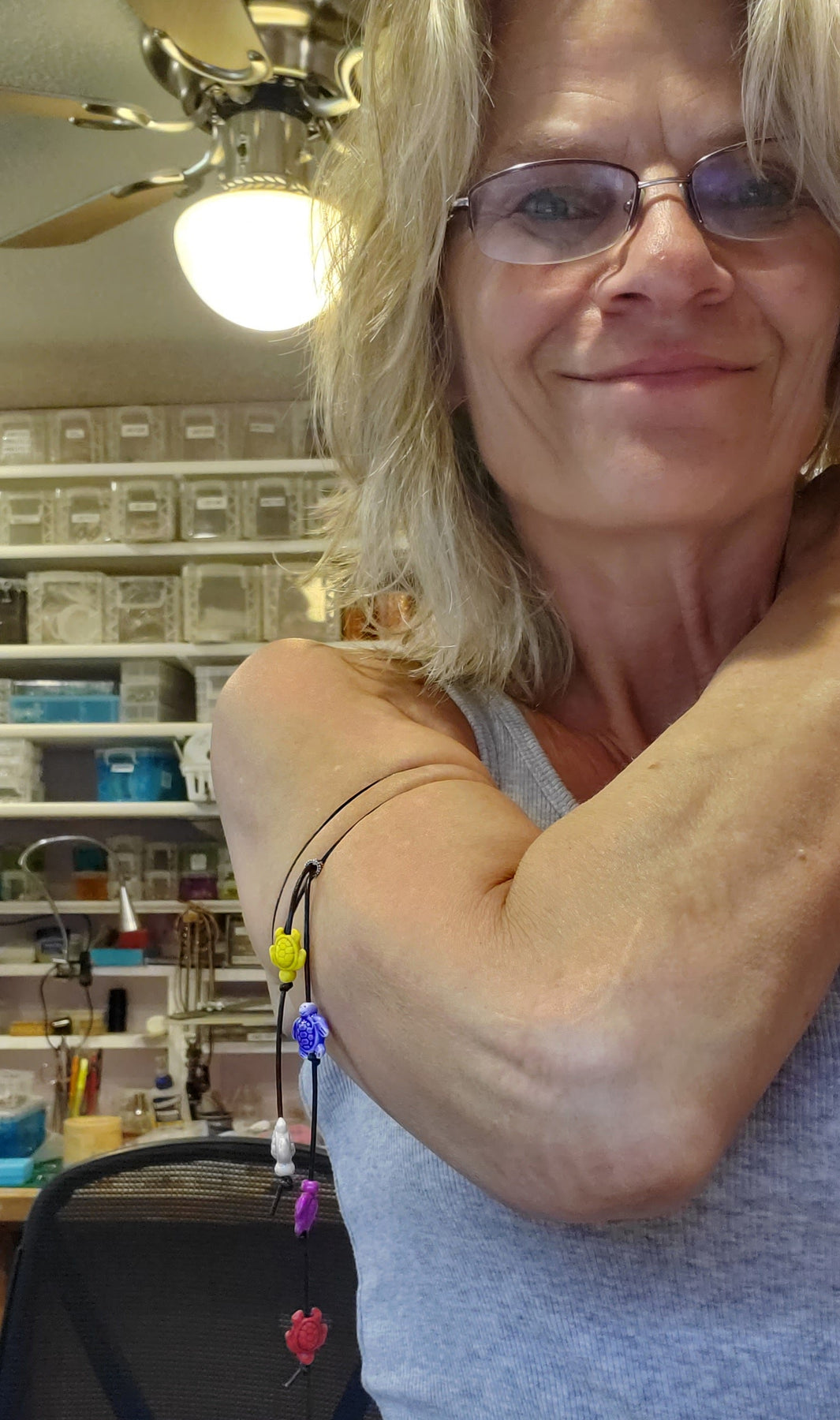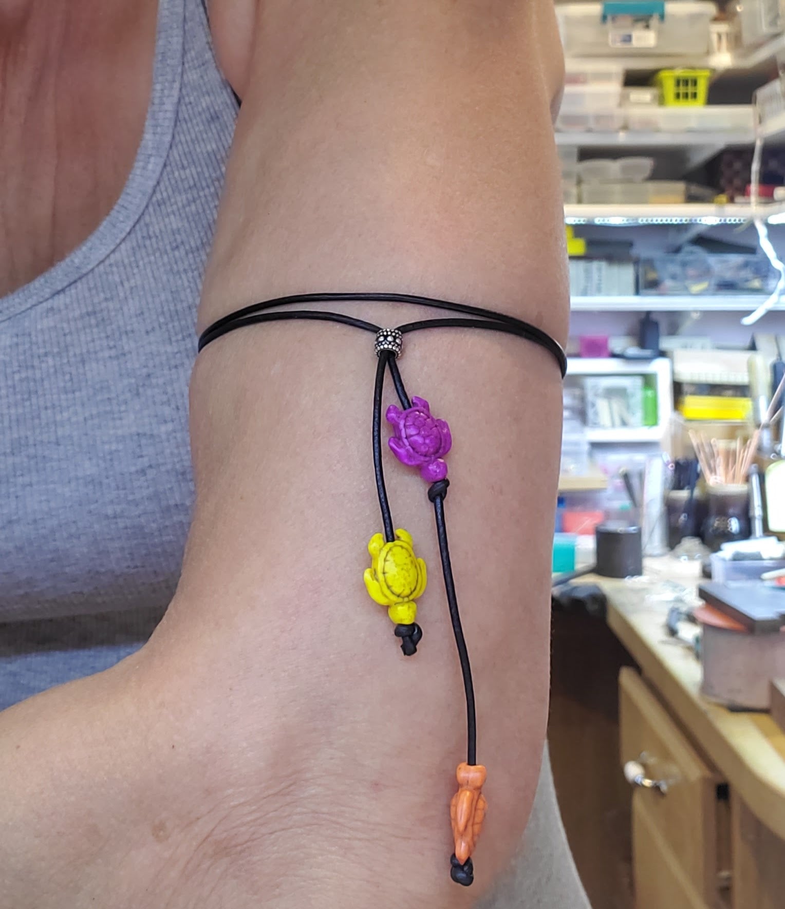 • Handmade colored ceramic turtle beads (approx. 1/2" each)