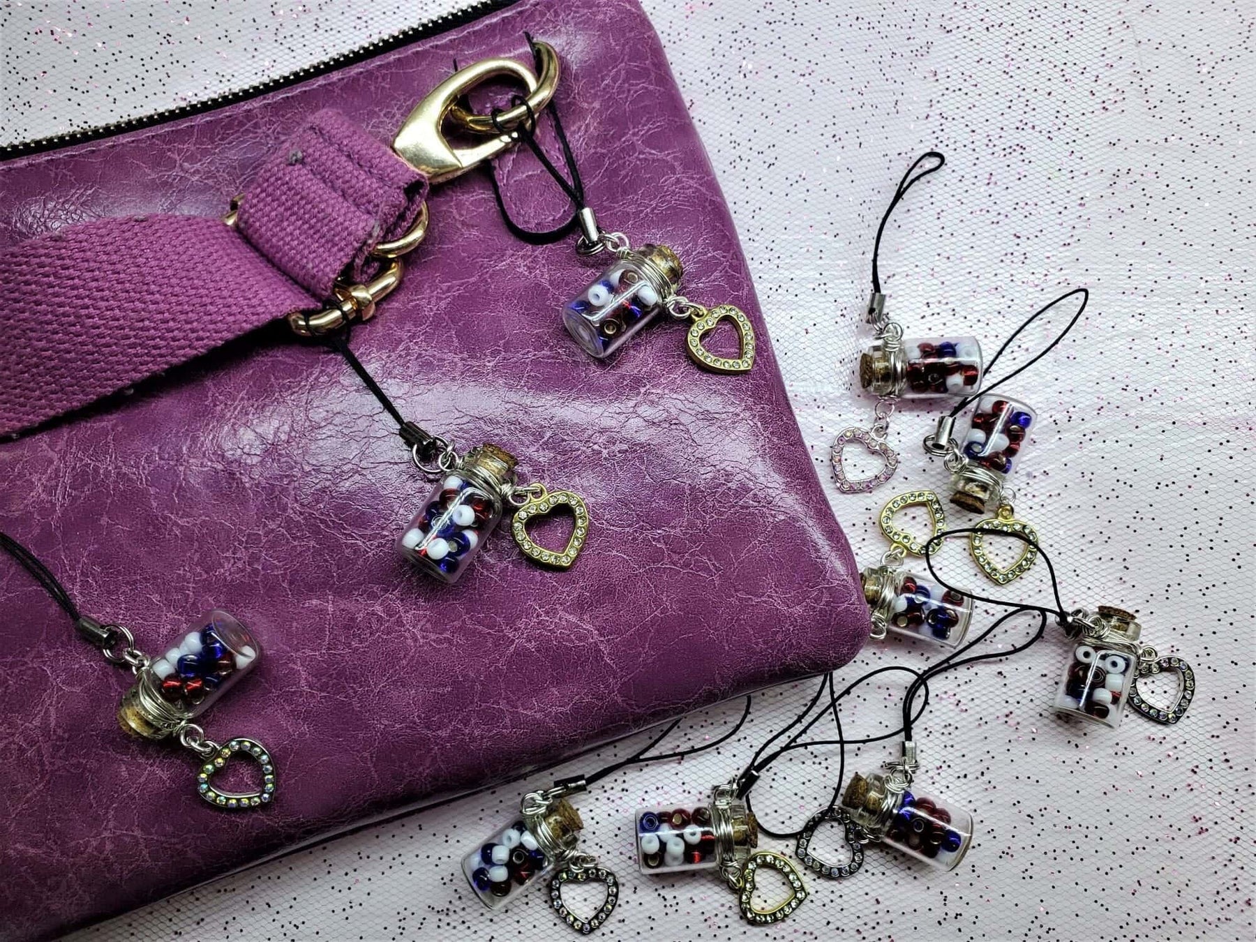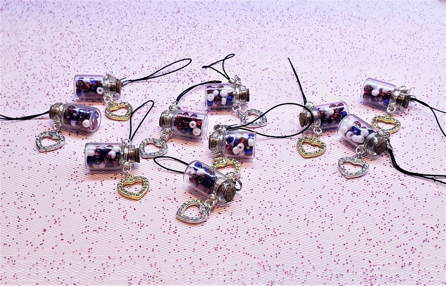 "I love creating these tiny treasures! Each miniature bottle is carefully filled with patriotic beads and wrapped with sterling silver wire to create a charm that's both beautiful and meaningful. The two loops give you flexibility in how you wear itâattach it to your phone, purse, or anywhere you want to show your American pride."