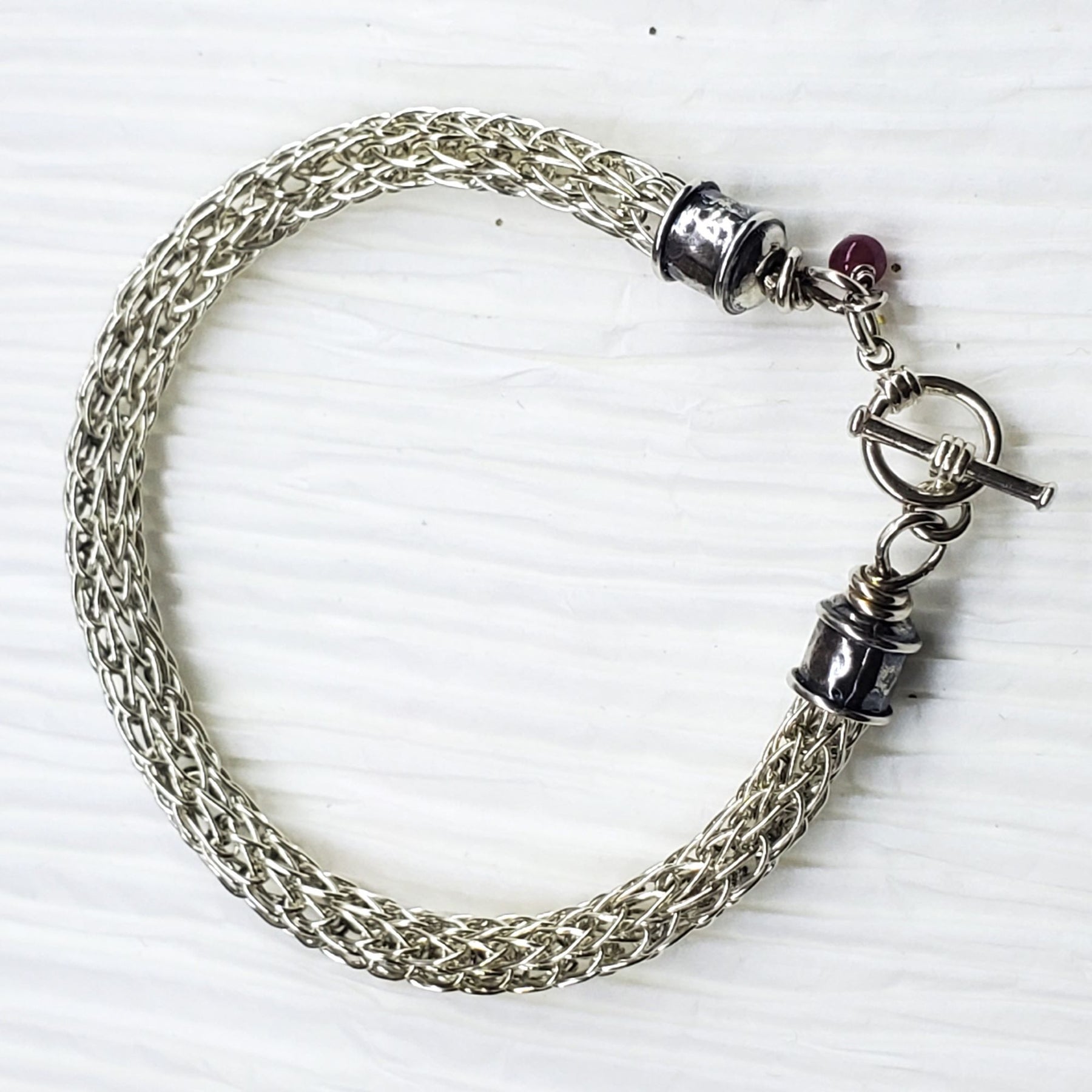AMD1266Handmade 10mm Silver Viking Knit Bracelet with Ruby CharmJewelryBracelet$ 190.00Alexa Martha Designs