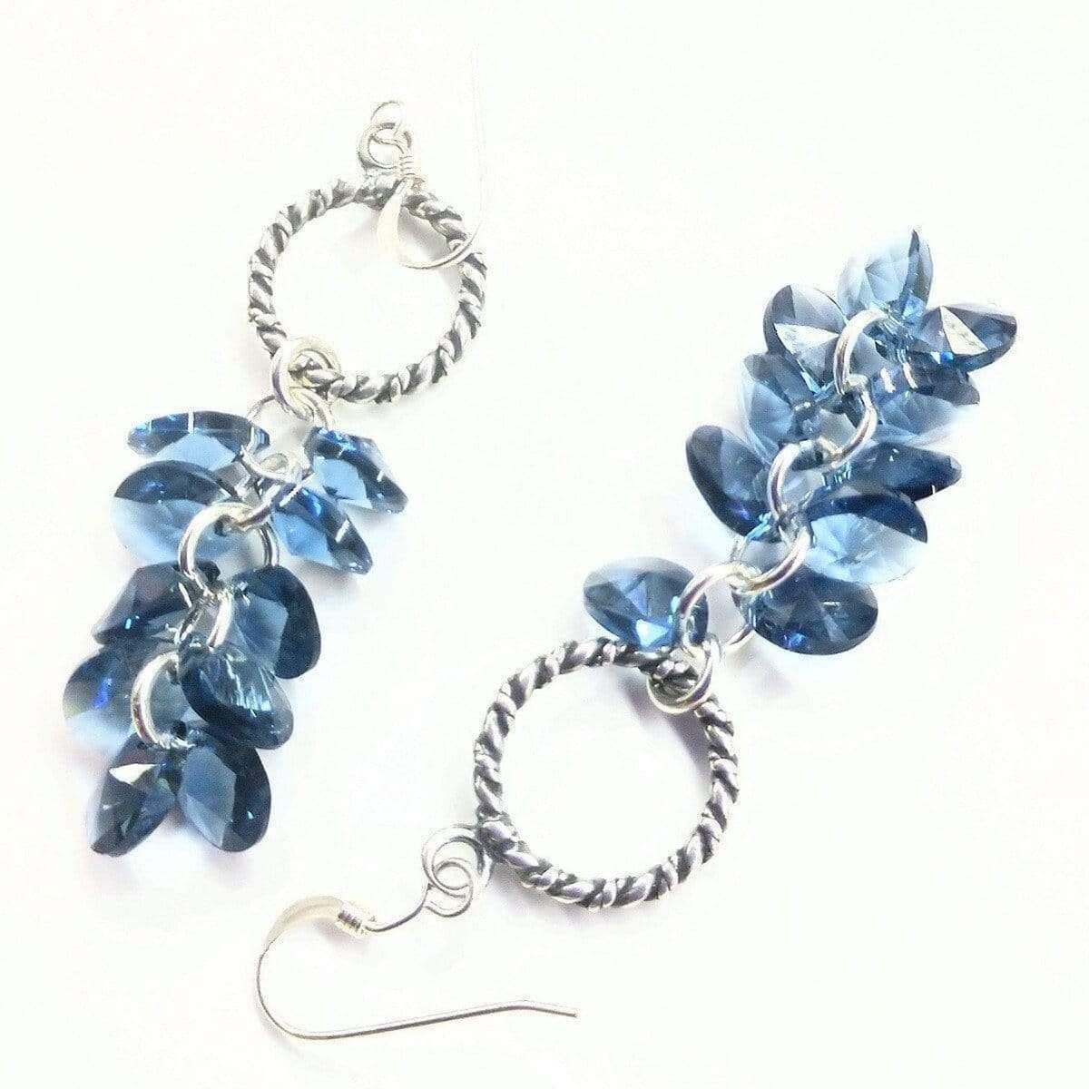 Handmade Sterling Silver Denim Blue Cascading Crystal Cluster Earrings