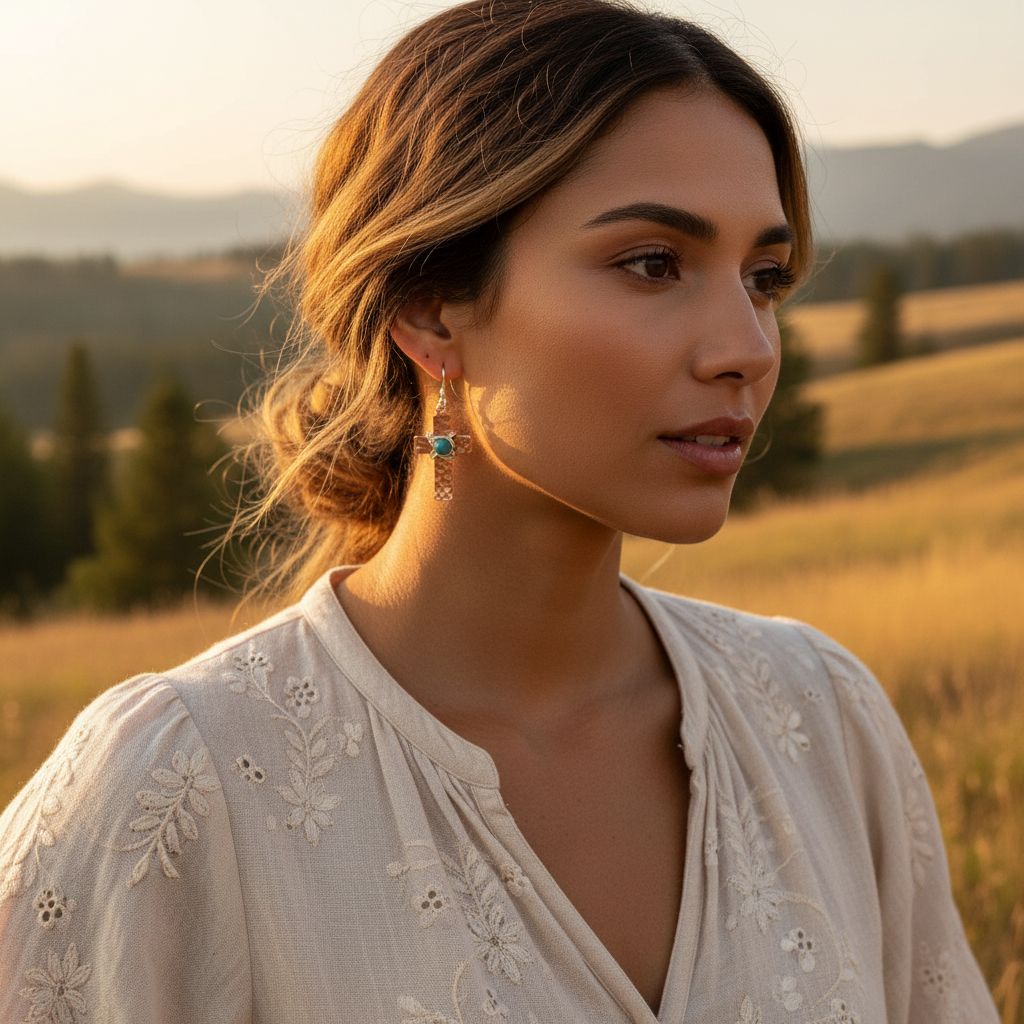 The cross is one of the most powerful symbols in Christianity, representing faith, sacrifice, and redemption. Wearing cross earrings is a beautiful way to express your beliefs and keep your faith close. Combined with turquoise—a stone associated with protection, healing, and spiritual communication—these earrings carry deep meaning beyond their beauty.