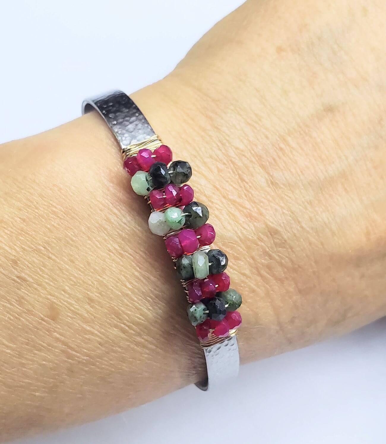 Secure & Beautiful: Each genuine ruby and emerald is individually wire-wrapped onto the stainless steel cuff using 14K gold filled wire. This artisan technique creates a secure, permanent setting that showcases the gemstones beautifully while ensuring they stay in place for years to come.