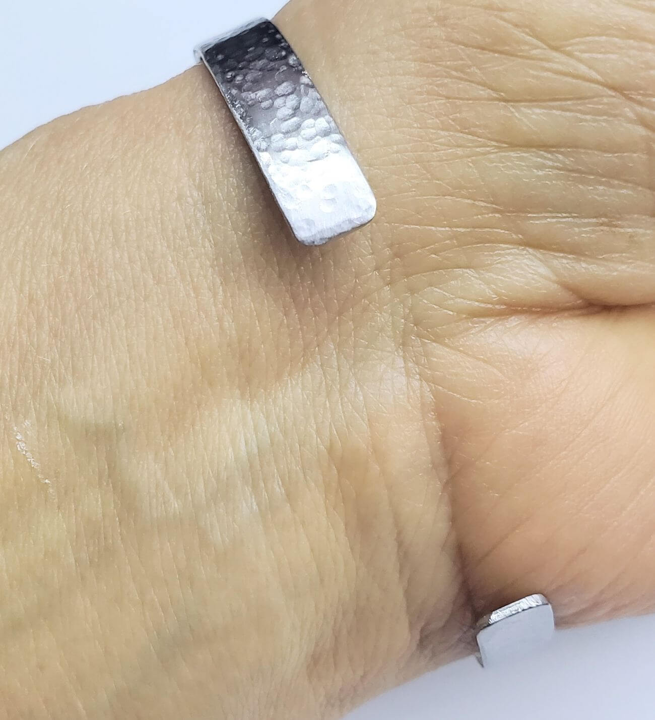 I apologize for any inconvenience caused by the size not being suitable for your wrists. However, I am glad to know that you are knowledgeable to modify them to fit you better. Thank you for loving the hammered look