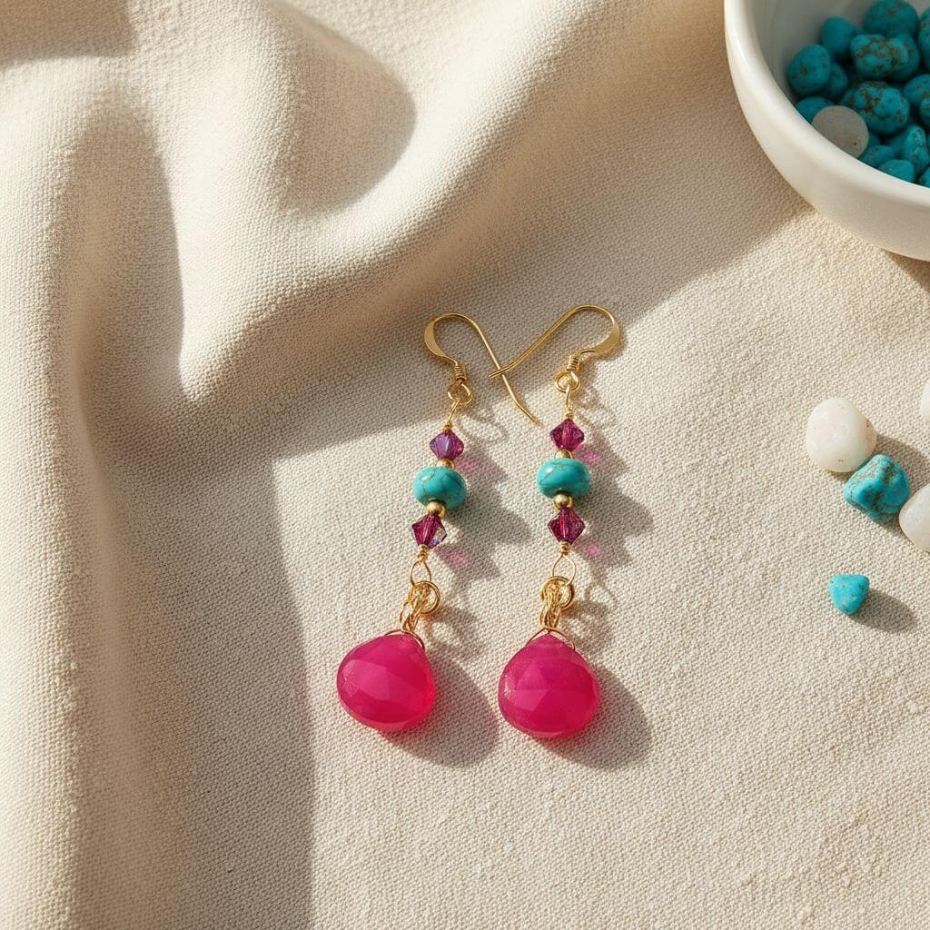 These earrings are part of our coordinated Hot Pink and Turquoise Gemstone Jewelry collection! Create your own signature set by pairing with matching necklaces, bracelets, or other coordinating pieces. The vibrant color combination is consistent across the entire collection, making it easy to build a cohesive, polished look.