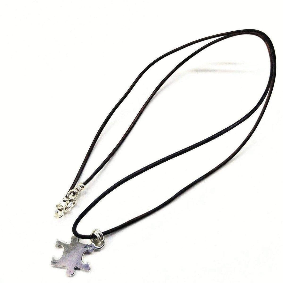 Sterling Silver Autism Awareness Puzzle Piece Leather Necklace