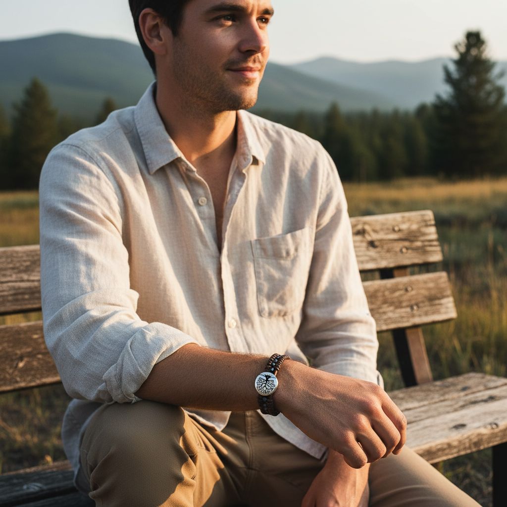 Embrace the beauty of nature with our Tree of Life Button Leather Wrap Bracelet. Crafted with brown and gray leather and adorned with seed beads, this bracelet is complete with a stunning tree of life button. Showcasing your love for nature has never been more stylish! This is an exquisite stylish unique handmade Brown Gray Leather Wrap Seed Bead Tree of Life Button Bracelet designed for men and women alike. The bracelet features a unique brown leather wrap alternating a grey metallic-looking tube seed bead with every wrap. The elegant earthy-colored leather wrap bracelet closes with a Tree of Life metal button-loop closure. This button bracelet is made to fit an 8-inch wrist.