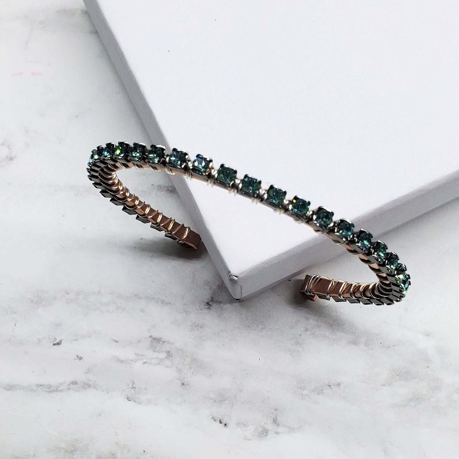 Wire Wrapped Turquoise Crystal Tennis Bangle ✨