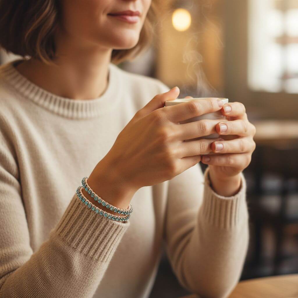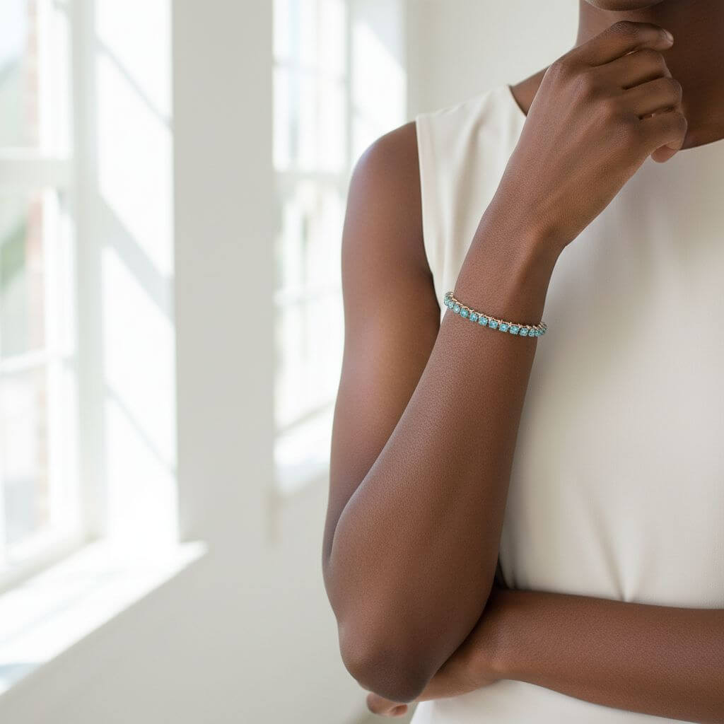 • Dazzling Turquoise Crystals: Premium Swarovski-quality crystals catch the light with every movement