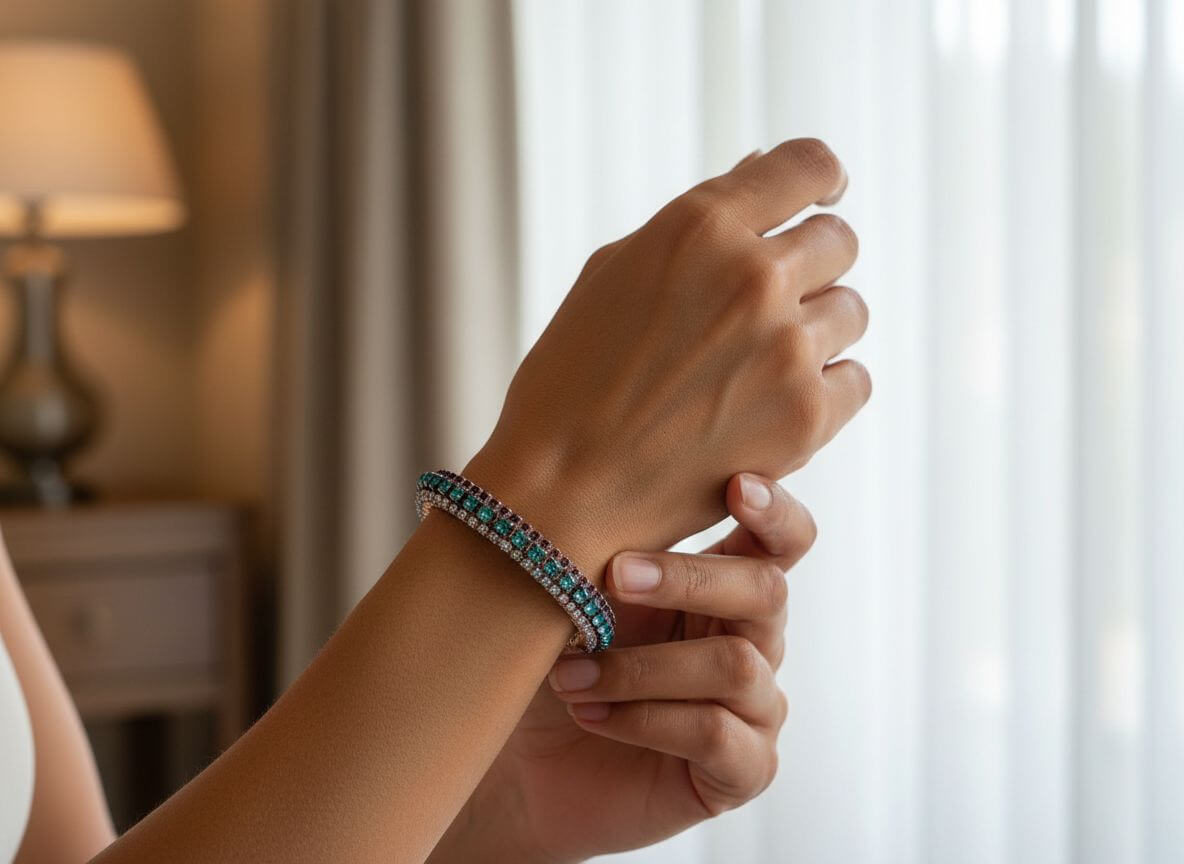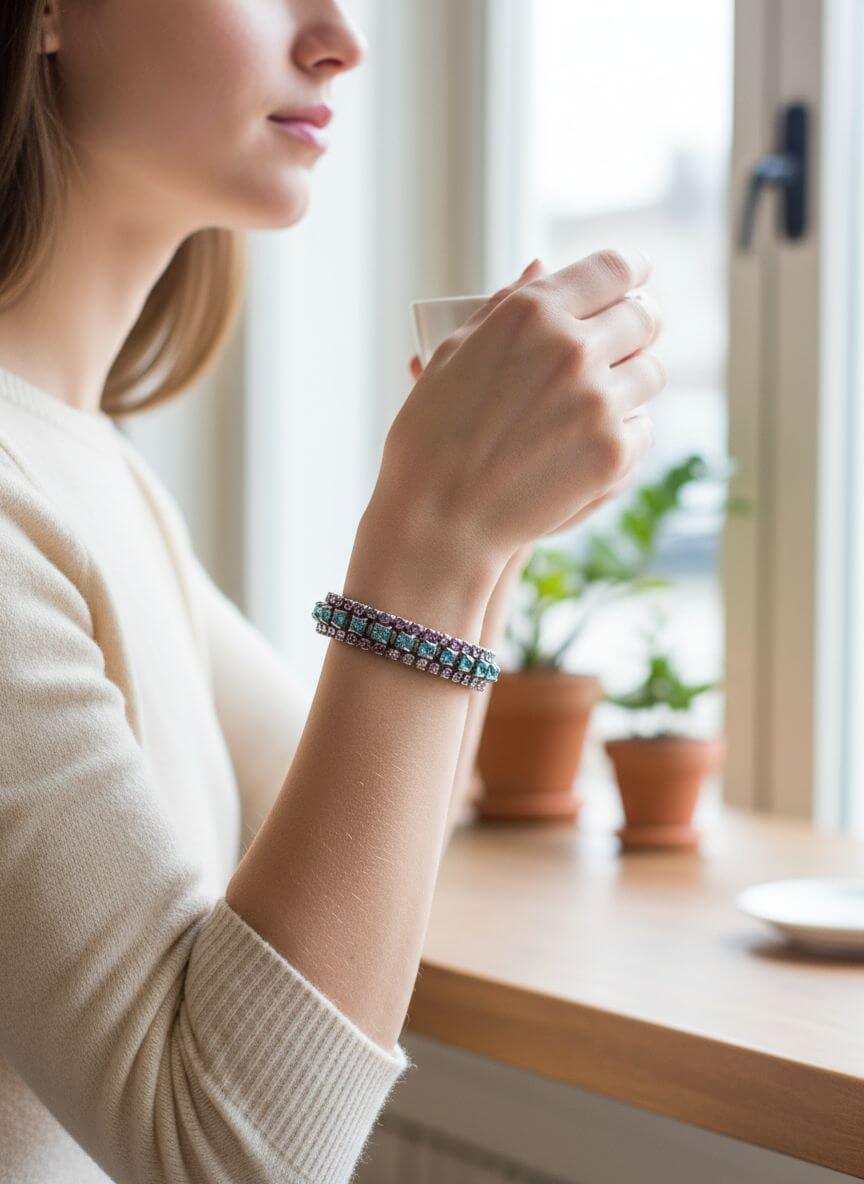 The Sparkle Factor: With three complete rows of Swarovski crystal cup chain, this bangle set delivers spectacular, non-stop sparkle. Every movement of your wrist creates flashes of rainbow, turquoise, and purple light—absolutely mesmerizing!