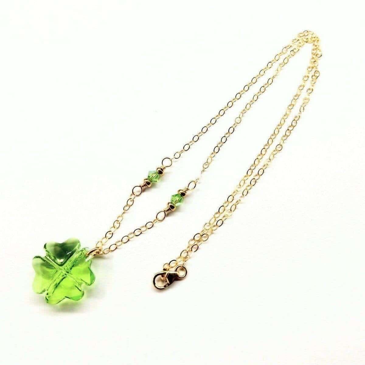 14 K Gold Filled Light Green Crystal Clover Necklace