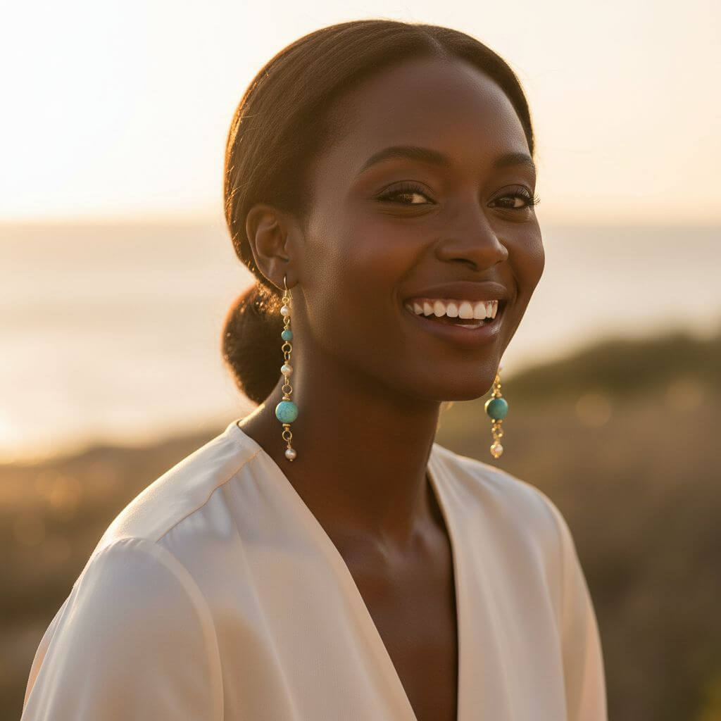• Genuine Turquoise Magnesite: Vibrant blue-green gemstone beads add natural beauty