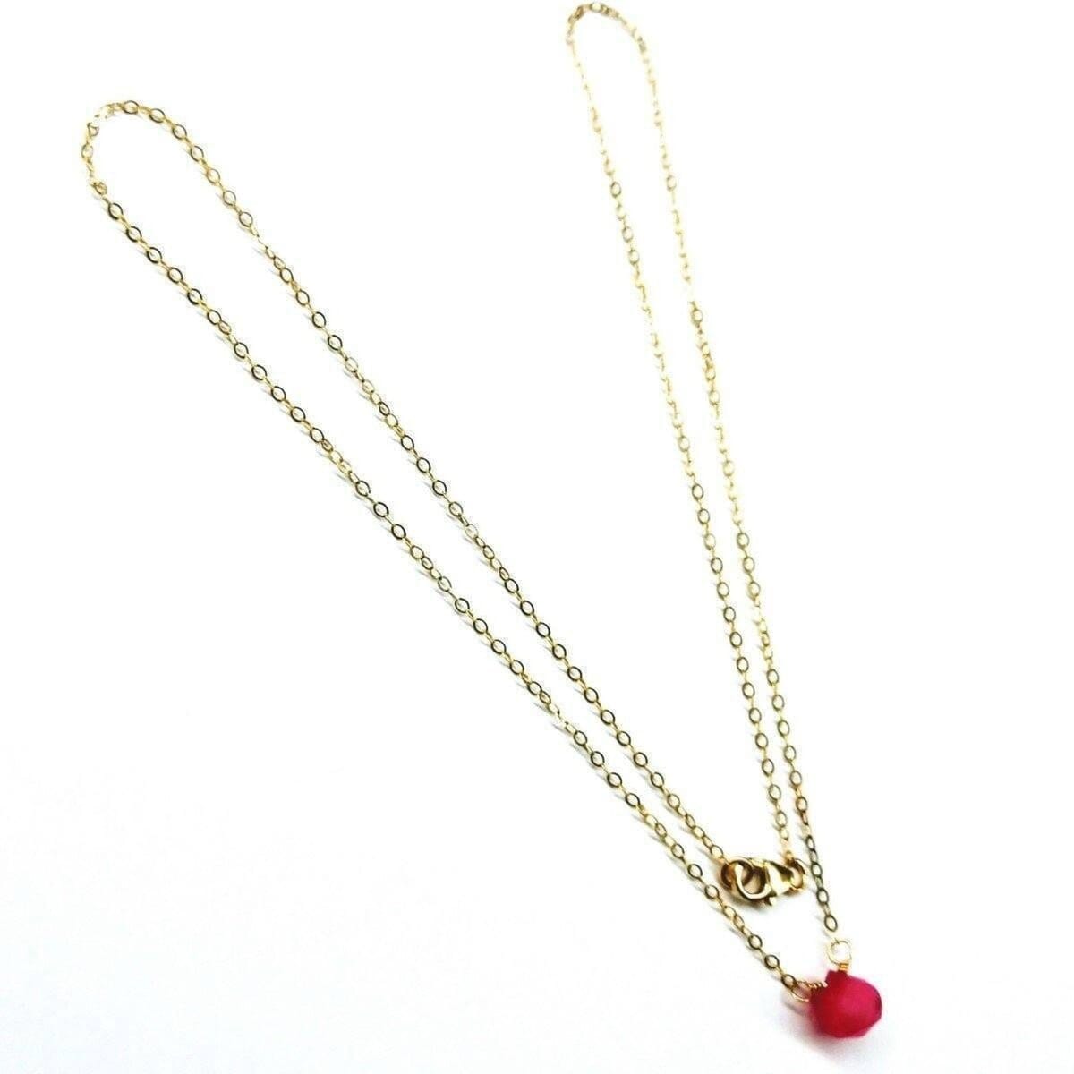 Tiny Hot Pink Chalcedony Gold Filled Necklace
