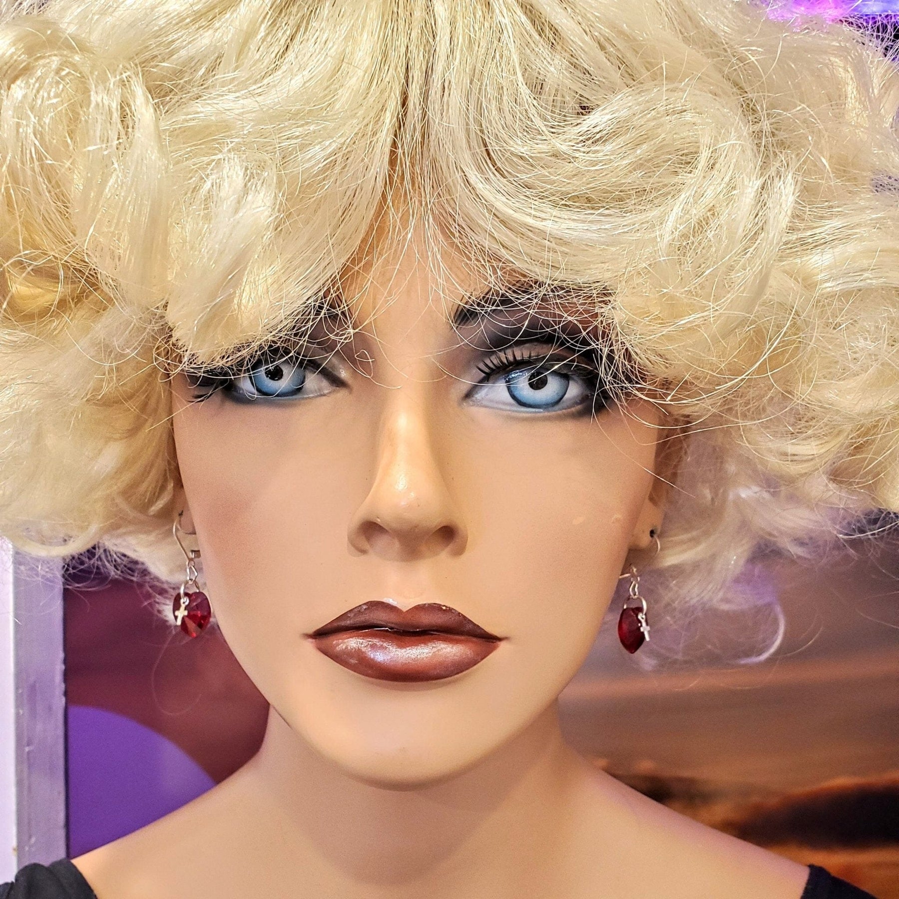 Each earring features a 10mm Swarovski crystal heart in deep siam red, wire-wrapped and secured to a sterling silver heart-shaped link. The heart link is soldered closed (not a jump ring) for permanent security—your crystals won't fall off. Sterling silver lever back ear wires provide comfortable, secure wear.