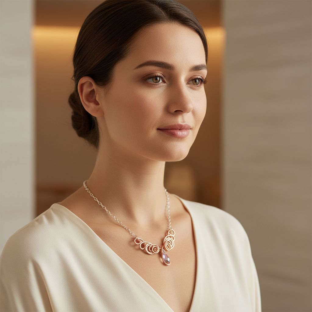 This necklace celebrates the beauty of upcycled copper wire, transformed through traditional wire sculpting techniques into heirloom-quality jewelry. Each loop, each hammer strike, each polished edge reflects the dedication of a Montana artisan committed to sustainable, small-batch production. As Handmade Hammered Metal Jewelry, this piece honors both environmental consciousness and timeless metalsmithing traditions.