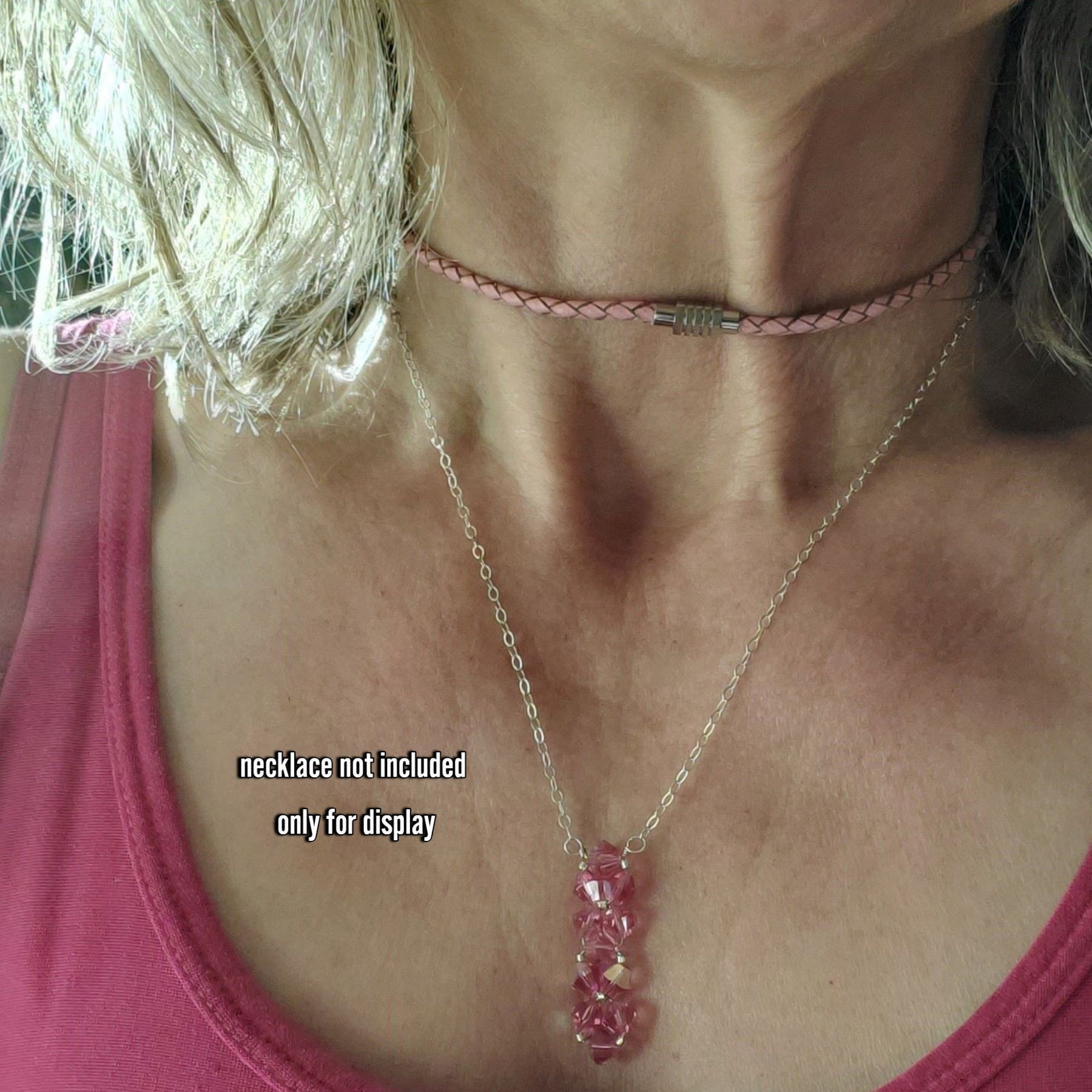 Elevate your fashion game with these 3mm Bolo Leather Sterling Silver Tube Snap Off Chokers, designed for effortless transitions and available in various colors and sizes! These chokers are not only versatile and stylish, but also feature a revolutionary magnetic snap-off closure for safety—secure hold yet snaps off easily when pulled apart. Suitable for responsible children as young as 8 years old, these chokers offer peace of mind for parents. Each choker is handmade to your requested length and style!