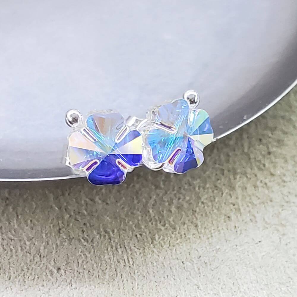 ✨8mm Crystal Clover Silver Spiral Ear Studs ✨