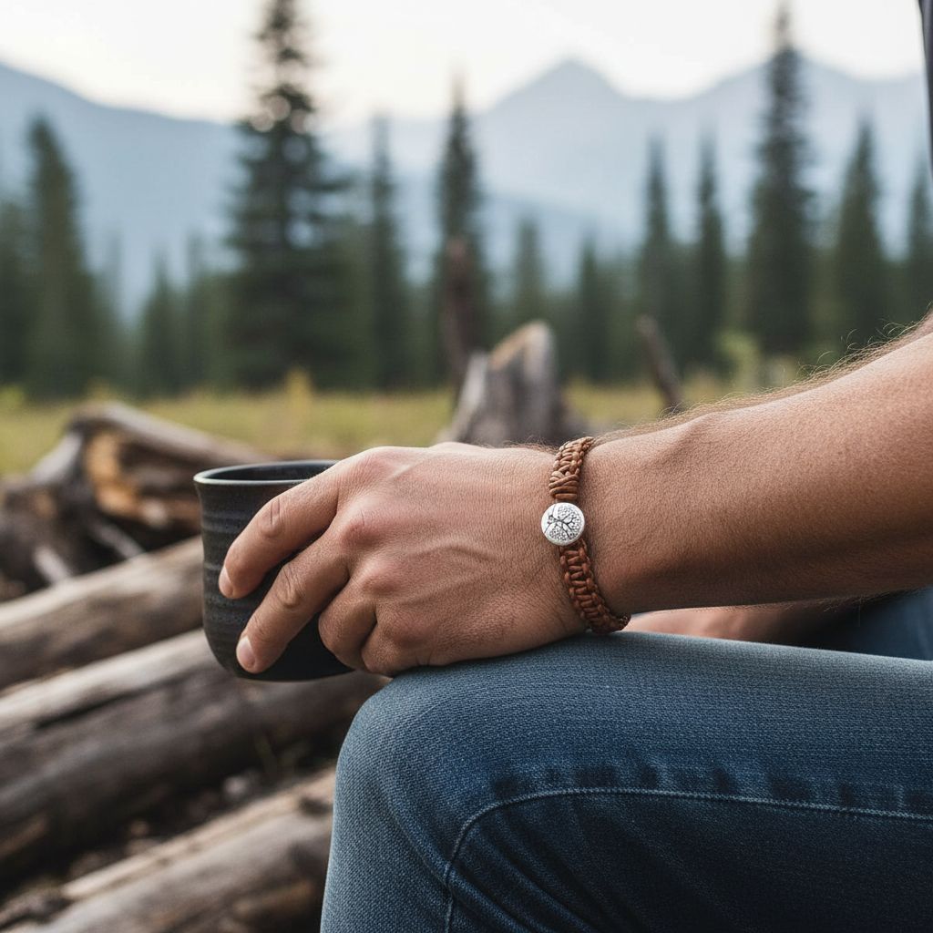 Every piece from our collection is crafted with dedication to quality and artistry. This earth-toned bracelet embodies our commitment to bold silhouettes, natural materials, and meaningful design. The macramé technique requires hours of careful knotting to create the intricate pattern, while the Tree of Life symbol adds spiritual depth to this rugged, masculine piece.