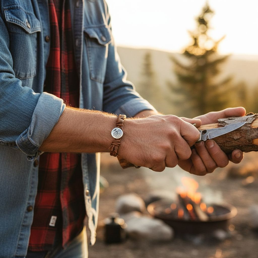 This substantial bracelet is designed to stand alone as a statement piece or layer with other leather and metal bracelets for a curated look. The earthy tones pair beautifully with casual denim, outdoor gear, and smart-casual attire. Wear it to the office, on weekend adventures, or anywhere you want to add rugged sophistication to your look.